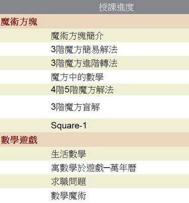 題是魔術方塊,經多年經驗設計而成的教學法,可以讓學生在最短時間內將魔術